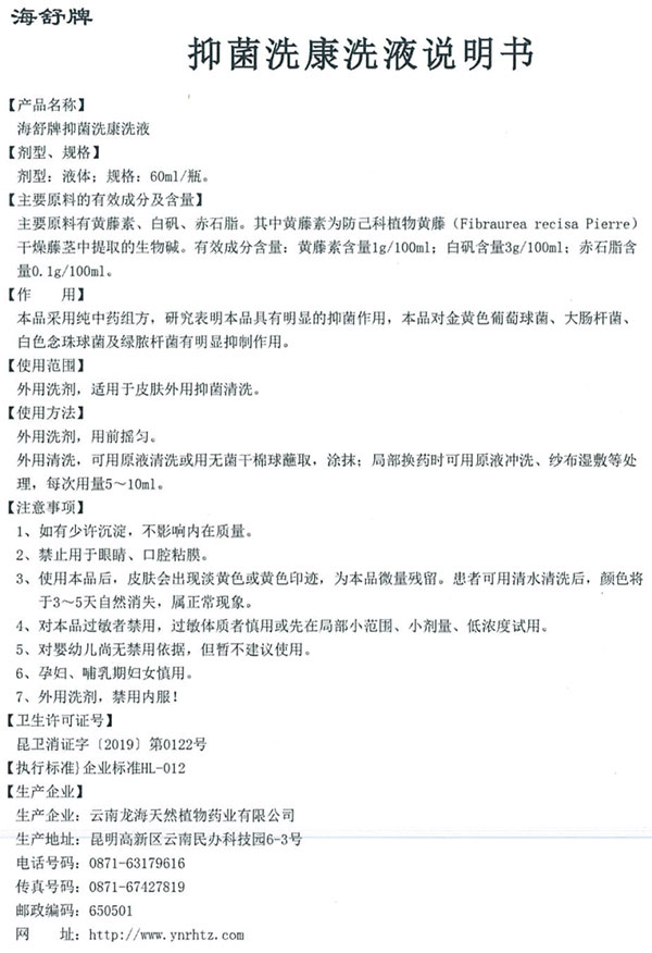【通用名】 海舒牌抑菌洗康洗液