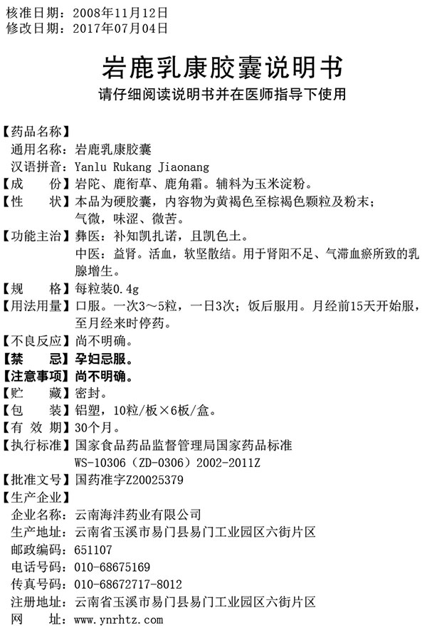 4、云南海沣药业生产的岩鹿乳康胶囊精选地道药材,从源头上保证药物疗效。