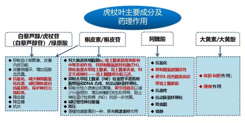 从上图可见,虎杖叶具有与虎杖相同的抑制血小板聚集、改善内皮功能、改善微循环、抗氧化、降血脂、降血糖、抗炎、保肝利胆、通便等作用,由于其含有槲皮素/槲皮苷含量远高于虎杖,同时具有还区别于虎杖的阿魏酸等成分,因此虎杖叶对5-羟色胺能和去甲肾上腺素能的调节作用(即调节植物神经)是非常显著的。综上所述,虎杖叶具有调节植物神经和优化血流分配的双重作用。适用于植物神经功能紊乱和血流分配紊乱的头晕患者。